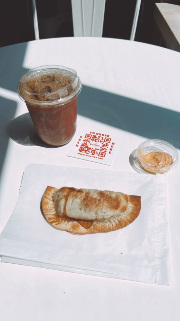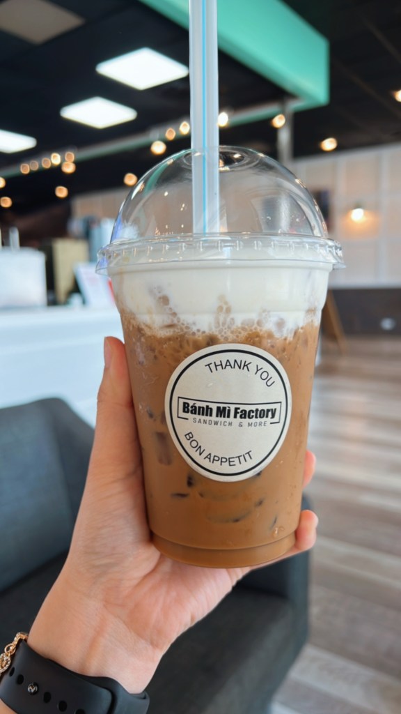I took a little bit of time to get ready, so by the time we got into Chicago this cafe was just about to run out of their pastries. Luckily, we got to Vietfive Coffee just in time before the last Bánh Mì Empanada was gone. It’s exactly what the name is, it’s a traditional Viet/French Baguette style sandwich in a form of an empanada and the flavor we got was the 5 Spice Tofu + Veggie. It was pretty good so it’s a must to come back early and try the other meats. Then of course, I had to get an Iced Cà Phê Sữa Đá with Condensed Milk or their Vietnamese style coffee.