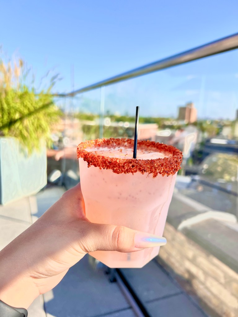 It’s still summer time, so what did we do? Grabbed some rooftop drinks with a beautiful view of the city. Club Cabana was perfect for that. It’s a rooftop part of a hotel, so you might have some people in the pool, but if you bring your swimmies then you can join in on the fun! They played good music and had a good selection of drinks on the menu. It’s outside of downtown Chicago, so you don’t get the traffic or noise which was nice, you also get a beautiful view of downtown. I am a sucker for rooftop bars, eating, etc. I love the city views, it makes me feel some type of way, but a good type of way. I was obsessed with my Paloma drink made with tequila because of the Tajin rim. I vote that we get rid of the salt rims on drink and replace it with Tajin, everything would taste 5x better.