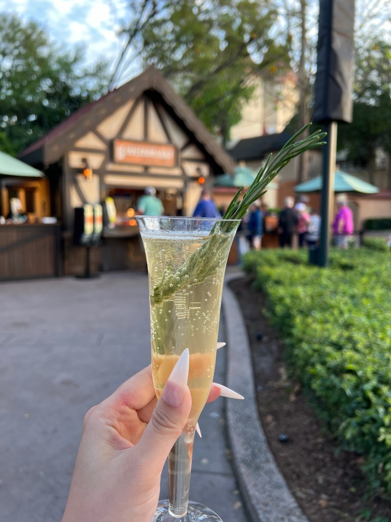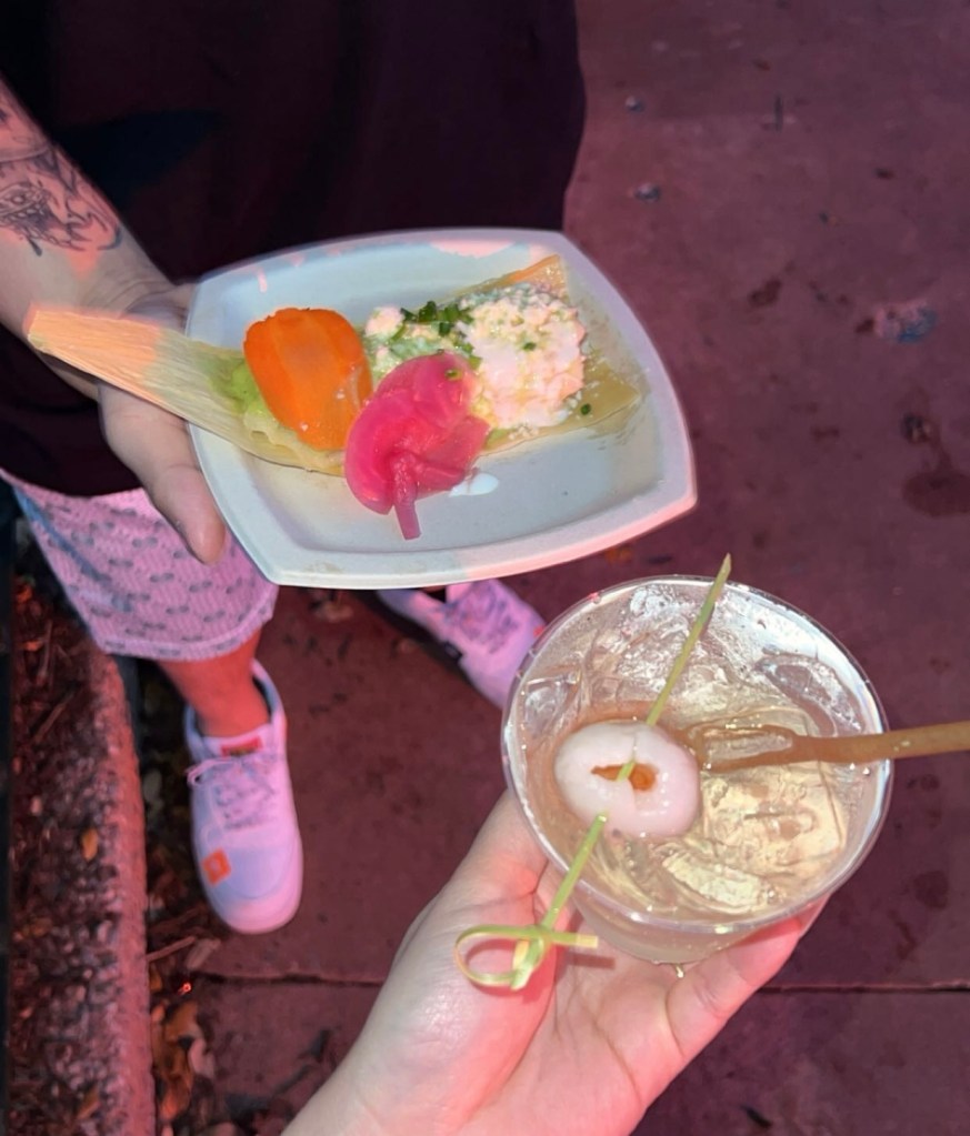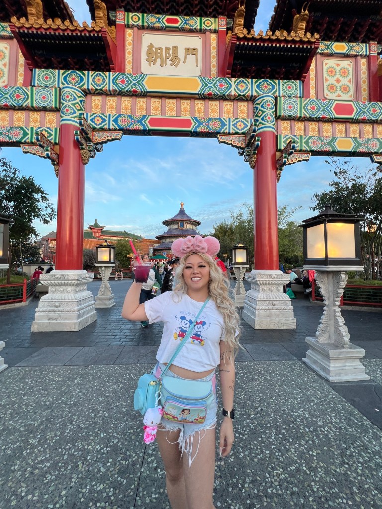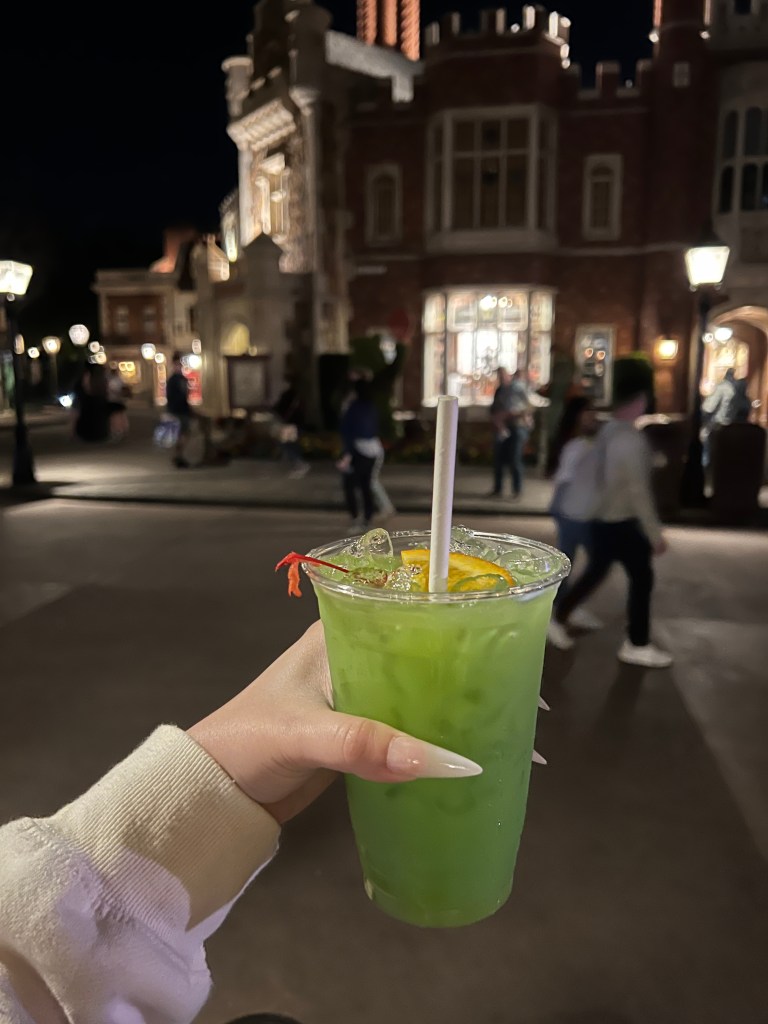 Did I use this as an excuse to put a picture of me in here? Yes, I definitely did. Plus the picture that I got of this drink is not that great. I was feeling the drinks for sure at this point and even more after this drink. This drink was very strong tasting. The popping boba at the bottom was our chaser with every sip. From here to the end, the Disney cast members were heavy handers!