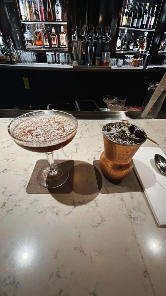I can’t tell you why the last drink of the night has the best photo. I amaze myself and also confuse my own self A LOT. Anyways, the last drink we had! It was another sweet cocktail and my second favorite of the day. It was pretty close to being my first favorite. This drink wasn’t as strong as the last few and we had a little bit of down time before getting this drink. I was better after this.