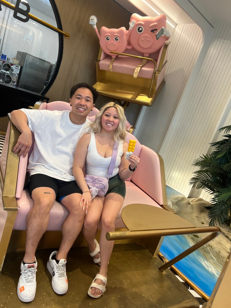 Our last stop on our trip before flying out was to SnowBean. It’s a cute small cafe that’s located right next door to Izziban Sushi & BBQ, which we have eaten at a few times. We just never know that SnowBean had their own little Love Lock Bridge! (We did order a strawberry smoothie from there as well) My boyfriend and I put up our own lock on the bridge. This would be our second lock that we put up together, out first one is located in Houston, Texas on a love lock bridge there from our trip back in 2021. It may seem like a silly thing to do, but I honestly think it’s so cute to do and it’s fun to have that memory and souvenir to go back to on your next travel back!