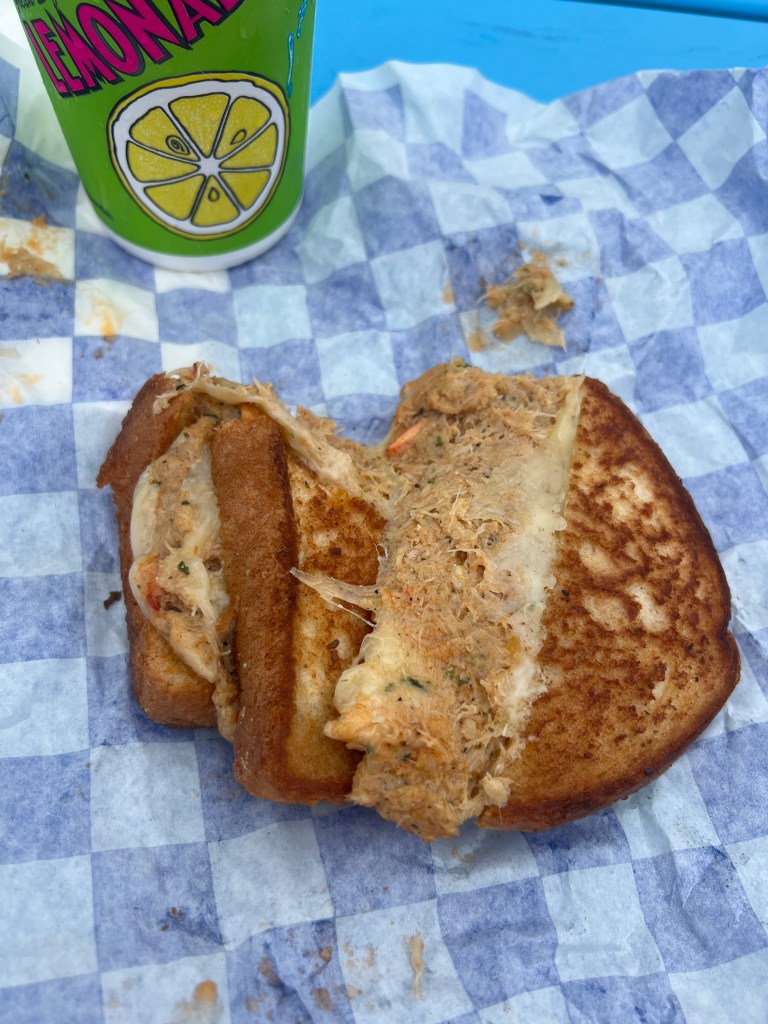 It was pretty hot out, so a freshly squeezed lemonade was a must! There was an option to add alcohol to the lemonade, but I decided not too. I was not going to make the mistake of “eating” alcohol like I did with previous festivals that I wanted to blog about. The first food truck was Eight Claw Crab Boil. I will say, I was hoping they had their seafood boil available, but sadly it wasn’t. Instead I ordered the Crab and Lobster Grilled Cheese. I’ve never had a grilled cheese that was this tasty. It was like heaven. I might have to hunt down Eight Claw Crab Boil pretty soon.